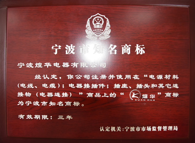 企业荣誉--电源线(塑料/橡胶),电缆,延长线,线束,线盘-宁波煊华电器有限公司
